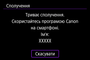 - На смартфоні може відображатися повідомлення про помилку, навіть якщо підключено Camera Connect. Якщо так, закрийте повідомлення про помилку та продовжуйте користуватися програмою.