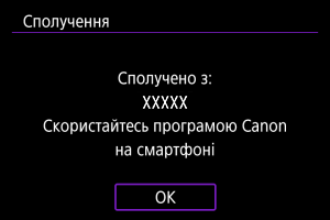 Щоб сполучити камеру з іншим смартфоном після попередньо встановленого сполучення, виберіть на показаному вище екрані [ОК].