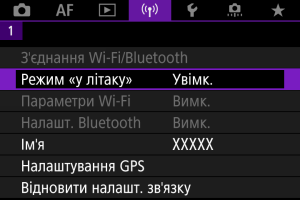 Якщо до вимкнутої камери не потрібно підключатися через Wi-Fi, установіть для параметра [Режим «у літаку»] значення [Увімк.] або для параметра [Налашт. Bluetooth] значення [Вимк.].
