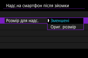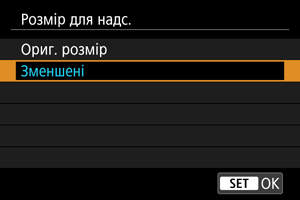 - Параметр [Розмір для надс.] дає можливість вибрати розмір зображення для надсилання.
