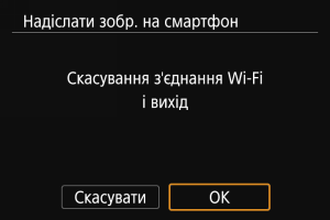 Натисніть [ОК] на екрані ліворуч, щоб завершити передавання зображень і підключення Wi-Fi.