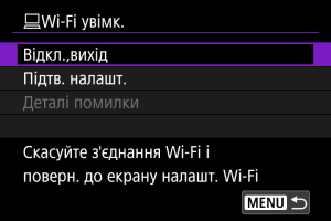 - У разі помилки підключення Wi-Fi можна переглянути інформацію про помилку.