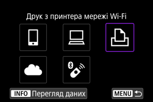 У цьому розділі описано, як друкувати зображення, підключивши камеру безпосередньо до принтера з підтримкою PictBridge (бездротова локальна мережа) через мережу Wi-Fi. Інструкції з експлуатації принтера містяться в посібнику користувача принтера.