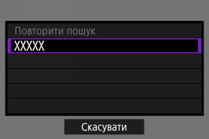- Якщо вибраного вами принтера немає в переліку, скористайтеся пунктом [Повторити пошук], щоб камера його знайшла та відобразила.