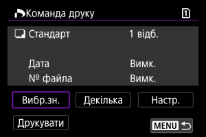 - Пункт [Друкувати] стає доступним, тільки коли зображення вибране та принтер готовий до друку.