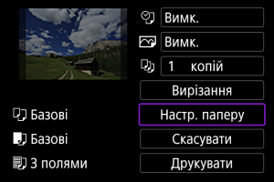 Налаштовуйте обрізання безпосередньо перед друком. У разі змінення інших параметрів друку після обрізання зображення може знадобитися ще одне обрізання зображення.