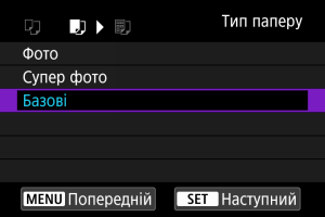 - [Базові] в ефектах друку та інших параметрах стосується налаштувань за замовчуванням, визначених виробником принтера. Докладнішу інформацію щодо параметрів [Базові] можна знайти в інструкції з використання принтера.