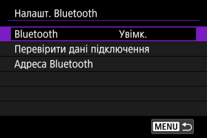 Можна переглянути адресу Bluetooth вашої камери.