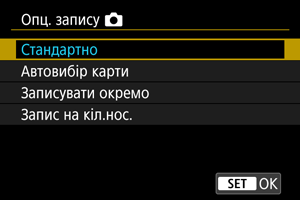 Якщо для параметра [Опц. запису ] встановлено налаштування [Записувати окремо] або [Запис на кіл.нос.] чи якщо для параметра [Опц. запису