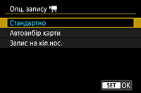 ] встановлено налаштування [Стандартно] або [Автовибір карти], виберіть карту пам’яті для записування та відтворення.