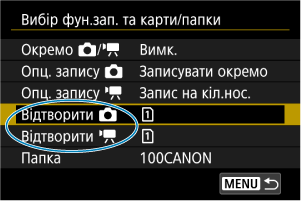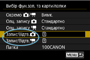Якщо вставлено дві карти, можна вибрати метод запису та карту, яку слід використовувати для записування й відтворення, таким чином.
