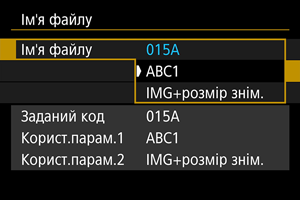 - Виберіть пункт [Ім'я файлу], потім — зареєстроване ім’я файлу.