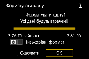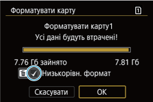 - Низькорівневе форматування можна скасувати під час його виконання, вибравши [Скасувати]. Навіть у цьому разі звичайне форматування буде вже завершено, і картою можна користуватися.