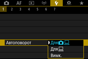 - Зображення, які було знято зі встановленим значенням [Вимк.] параметра автоматичного повертання, не повертатимуться під час відтворення, навіть якщо згодом для автоматичного повертання буде встановлено значення [Увімк.].