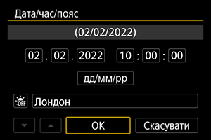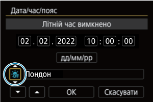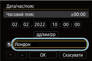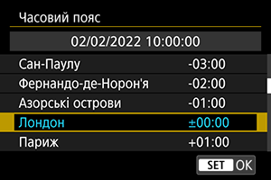 Під час першого вмикання камери, а також у разі скидання параметрів дати/часу/часового поясу виконайте наведені нижче дії, щоб уперше задати часовий пояс.