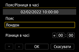 - Установивши часовий пояс або різницю в часі, виберіть [ОК].