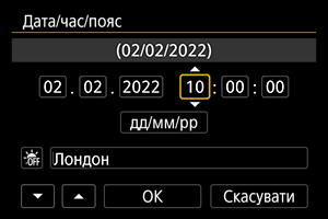 Обов’язково встановіть дату/час, оскільки до зроблених зображень додаватимуться відомості про дату й час зйомки.
