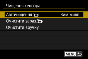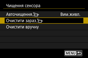 - Повторне чищення сенсора не призводить до суттєвого покращення результатів. Зверніть увагу, що відразу після чищення функція [Очистити зараз