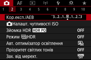 - Після виходу з меню на екрані відобразиться діапазон AEB.