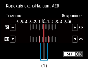 - Допускається поєднання брекетингу автоекспозиції та корекції експозиції.