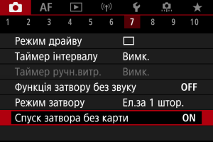 Можна настроїти камеру, щоб зйомка не відбувалася за відсутності карти пам’яті. Значенням за замовчуванням є [Увімк.].