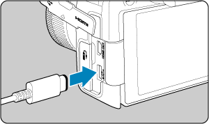 Щоб підключити камеру до електромережі без заряджання акумулятора, потрібно встановити перемикач живлення камери в положення . Однак акумулятор продовжує заряджатися під час автоматичного вимкнення живлення.