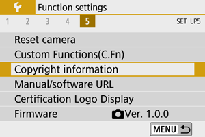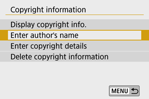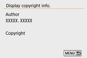- If the entry for “Author” or “Copyright” is long, it may not be displayed entirely when you select [Display copyright info.].