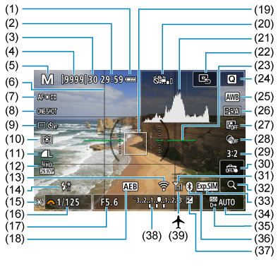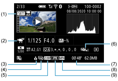 - For simplicity, explanations are omitted for items that are also included in basic/detailed information display for still photos, which are not shown here.