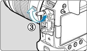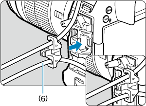 У разі використання лише додаткового інтерфейсного кабелю Canon або товстого чи тонкого наявного на ринку HDMI-кабелю протягніть кабель у затискач (2), як було показано раніше, перш ніж приєднати затискач до пристрою для захисту кабелю.