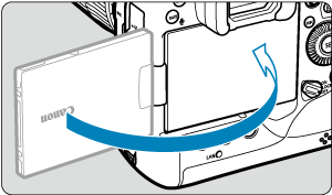 - Якщо кабель під’єднано до роз'єму камери, діапазон кута повороту відкритого екрана зменшується.