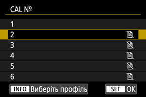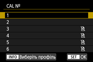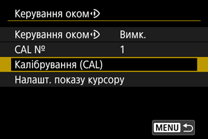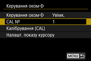 Щоб зареєструвати дані калібрування для інших користувачів або на випадок, коли ви будете в окулярах, виберіть доступний номер для призначення даних серед номерів, позначених піктограмою [] на екрані [CAL №], а потім виконайте калібрування.