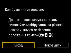 - Для більшої точності керування очима виберіть пункт [Покращити] та виконайте калібрування для зйомки з вертикальною орієнтацією камери.