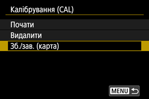 - Виберіть пункт [Зберегти на карту], щоб зберегти всі дані калібрування камери на карту.