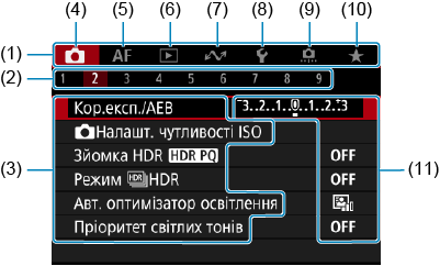 - Для деяких недоступних для вибору елементів меню не завжди можна побачити, яка функція має пріоритет.