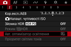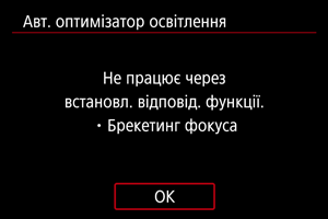 Недоступний елемент меню знову стає доступним для встановлення, якщо скасувати налаштування функції, що має пріоритет.