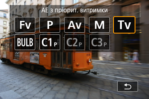 У цьому режимі витримка задається вручну, після чого камера автоматично вибирає значення діафрагми, необхідне для досягнення стандартної експозиції, що відповідає яскравості об'єкта. За коротшої витримки об'єкти, що рухаються, виглядатимуть нерухомими. Довша витримка створює ефект розмиття, який справляє враження руху.