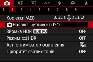 - Значення параметра також можна встановити на екрані [Чутливість ISO] вкладки [