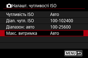 Щоб запобігти автоматичному встановленню надто довгої витримки, для автоматичної чутливості ISO можна встановити максимальне значення витримки.