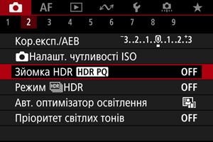 : Вихід HDMI HDR] значення [Увімк.] (). Зверніть увагу, що на пристроях відображення зображень HDR використовуються зображення HDR за будь-якого значення параметра [