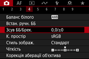 - Для брекетингу балансу білого можна змінити порядок брекетингу () і кількість знімків ().