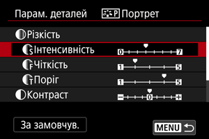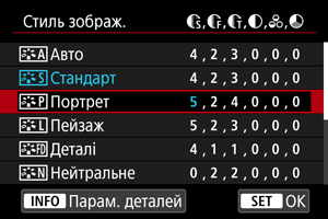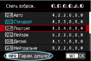 - Вибравши в кроці 3 пункт [За замовчув.], можна відновити для параметрів відповідного стилю зображення значення за замовчуванням.