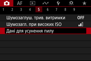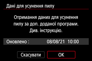 - Дані для усунення пилу недоступні, коли використовуються об'єктиви RF-S чи EF-S або якщо для параметра [