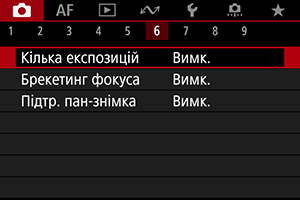 - Якщо вибрати [Постійно], функція мультиекспозиційної зйомки працюватиме, доки в меню, показаному на кроці 2, не буде вибрано значення [Вимк.].