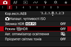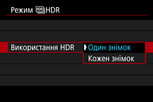 - Якщо вибрати [Кожен знімок], режим HDR залишатиметься активним, доки в меню, показаному на кроці 2, не буде вибрано значення [Вимкн. HDR].
