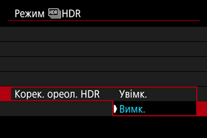 - Щоб вийти з режиму HDR, виберіть [Вимкн. HDR].