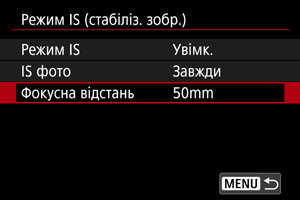 : Режим IS (стабіліз. зобр.)] не відображається, якщо до камери приєднано об'єктив із функцією стабілізації зображення (IS).