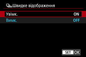 Високошвидкісне відтворення, яке переключається між кожним знімком і живим зображенням, доступне під час зйомки в режимі спрацьовування затвора [] (високошвидкісна неперервна зйомка) і в режимі затвора, відмінного від електронного.