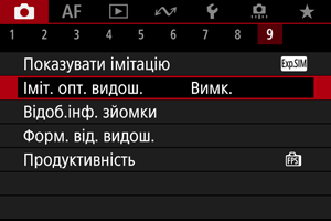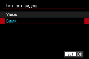 Під час фотозйомки доступний природний вигляд видошукача та відображення екрана, схожий на вид з оптичного видошукача. Зверніть увагу, що зображення, які відображаються за встановленого для цієї функції значення [Увімк.], можуть відрізнятися від фактичних результатів зйомки.