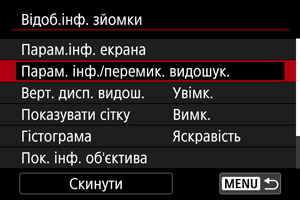 , щоб вибрати інформаційні екрани, які відображатимуться у видошукачі.