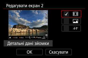 , щоб вибрати інформаційні екрани, які відображатимуться на дисплеї камери.
